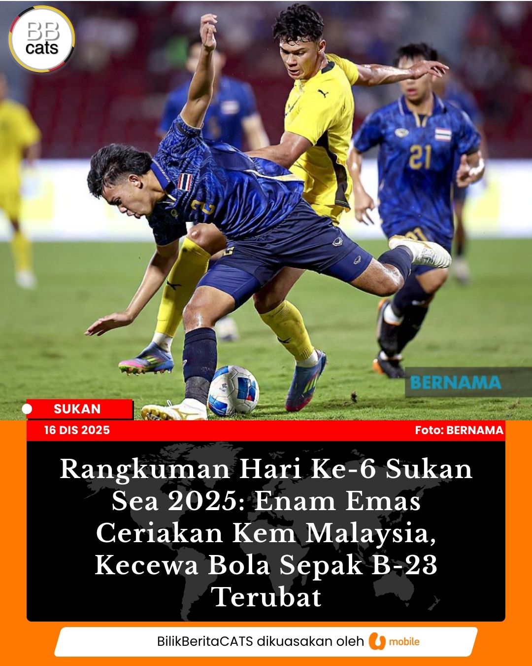Malaysia mengubat kekecewaan tersingkirnya skuad bola sepak B-23 dengan meraih enam pingat emas pada hari keenam Sukan SEA 2025 Read more...