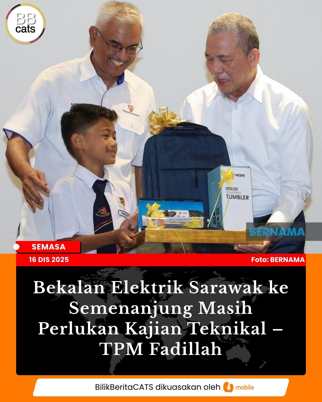 Cadangan pembekalan tenaga elektrik dari Sarawak ke Semenanjung Malaysia masih di peringkat dasar dan memerlukan kajian teknikal terperinci Read more...