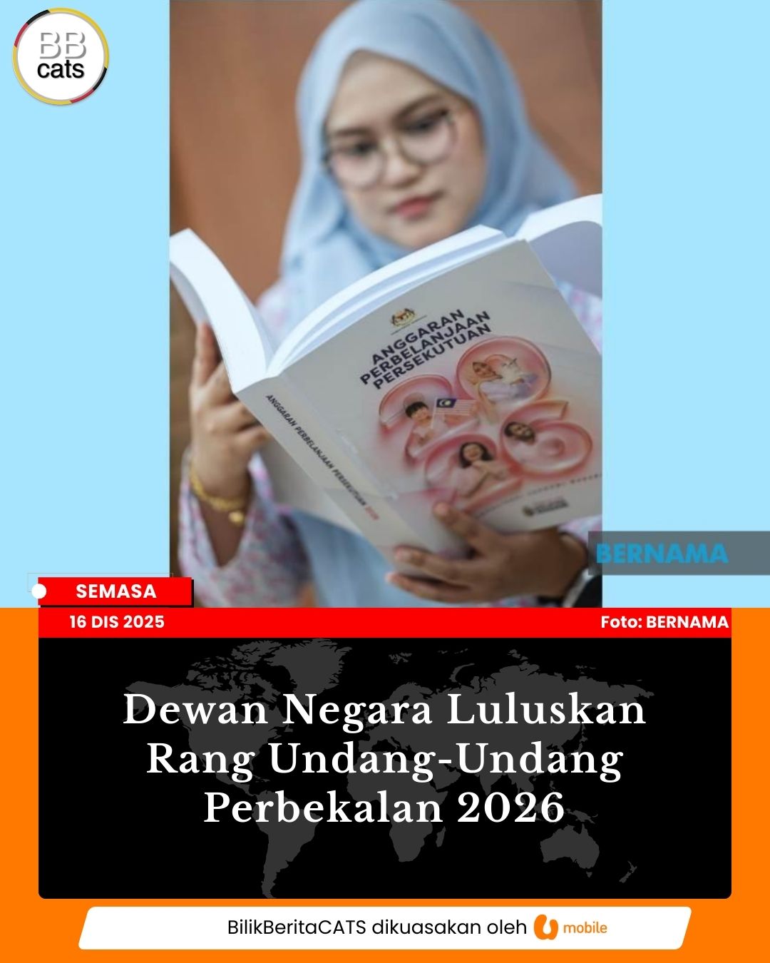 Dewan Negara luluskan Belanjawan 2026 bernilai RM470 bilion yang menekankan kesejahteraan rakyat, pengukuhan ekonomi, dan pengurusan kewangan negara yang mampan Read more...