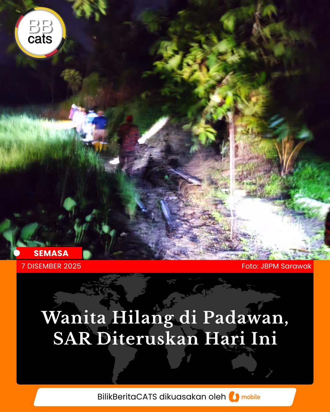 Wanita Hilang Di Padawan, SAR Diteruskan Hari Ini