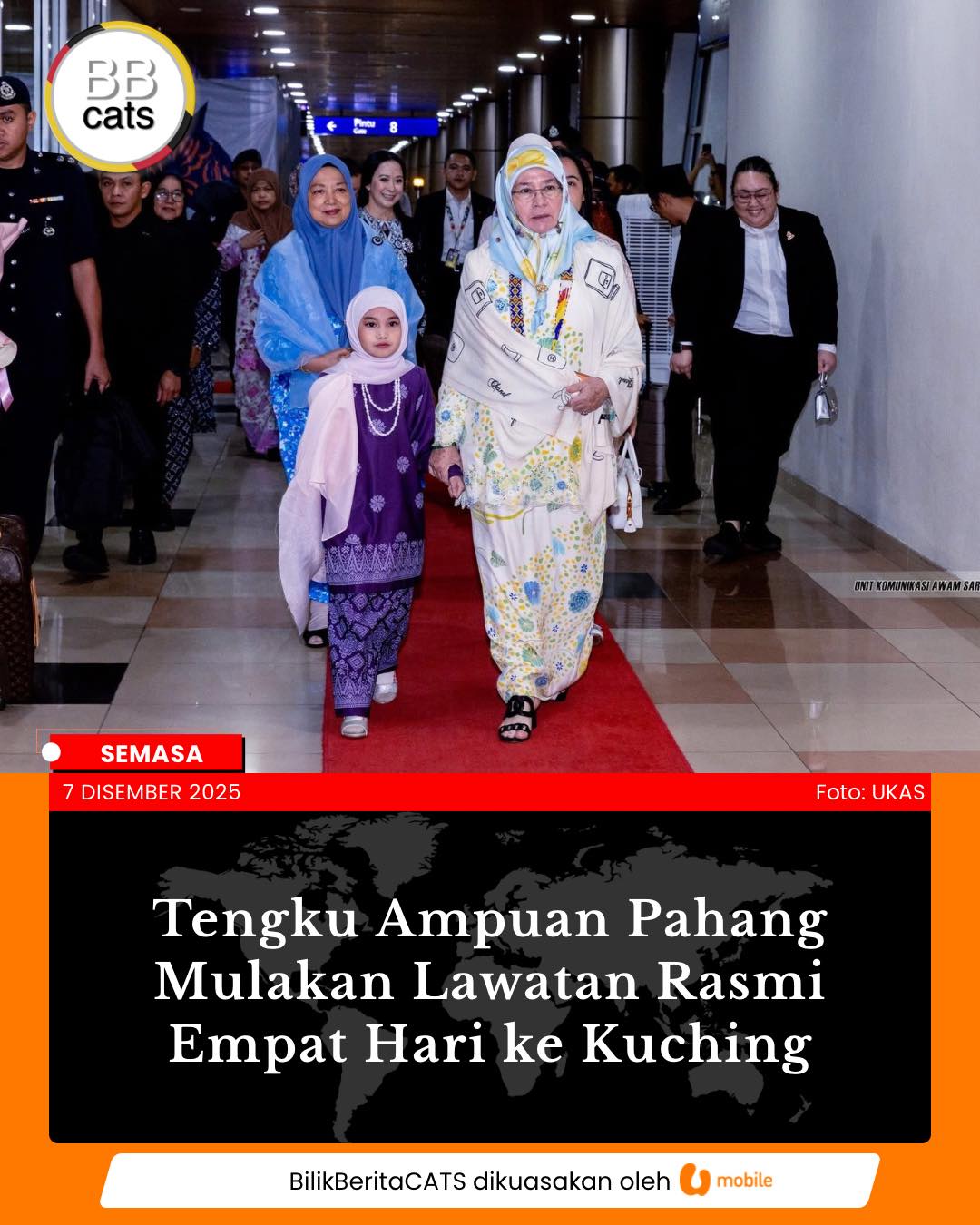 Tengku Ampuan Pahang Tiba Di Kuching Untuk Lawatan Rasmi Empat Hari