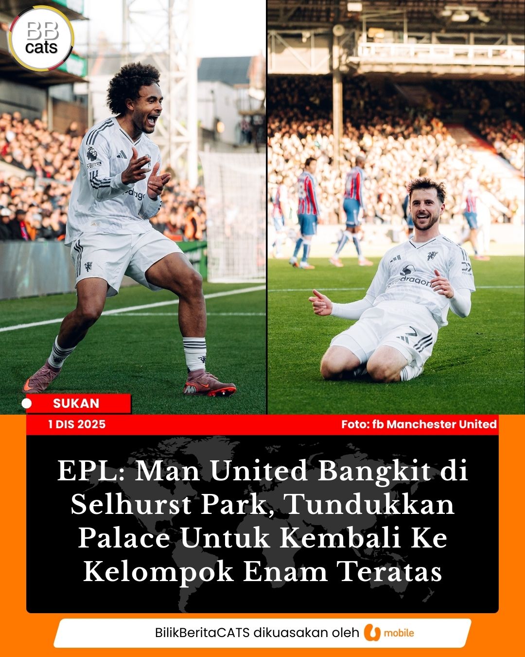 Manchester United bangkit pada babak kedua untuk menewaskan Crystal Palace 2-1 di Selhurst Park, sekali gus kembali ke enam teratas Liga Perdana Inggeris. Read more...