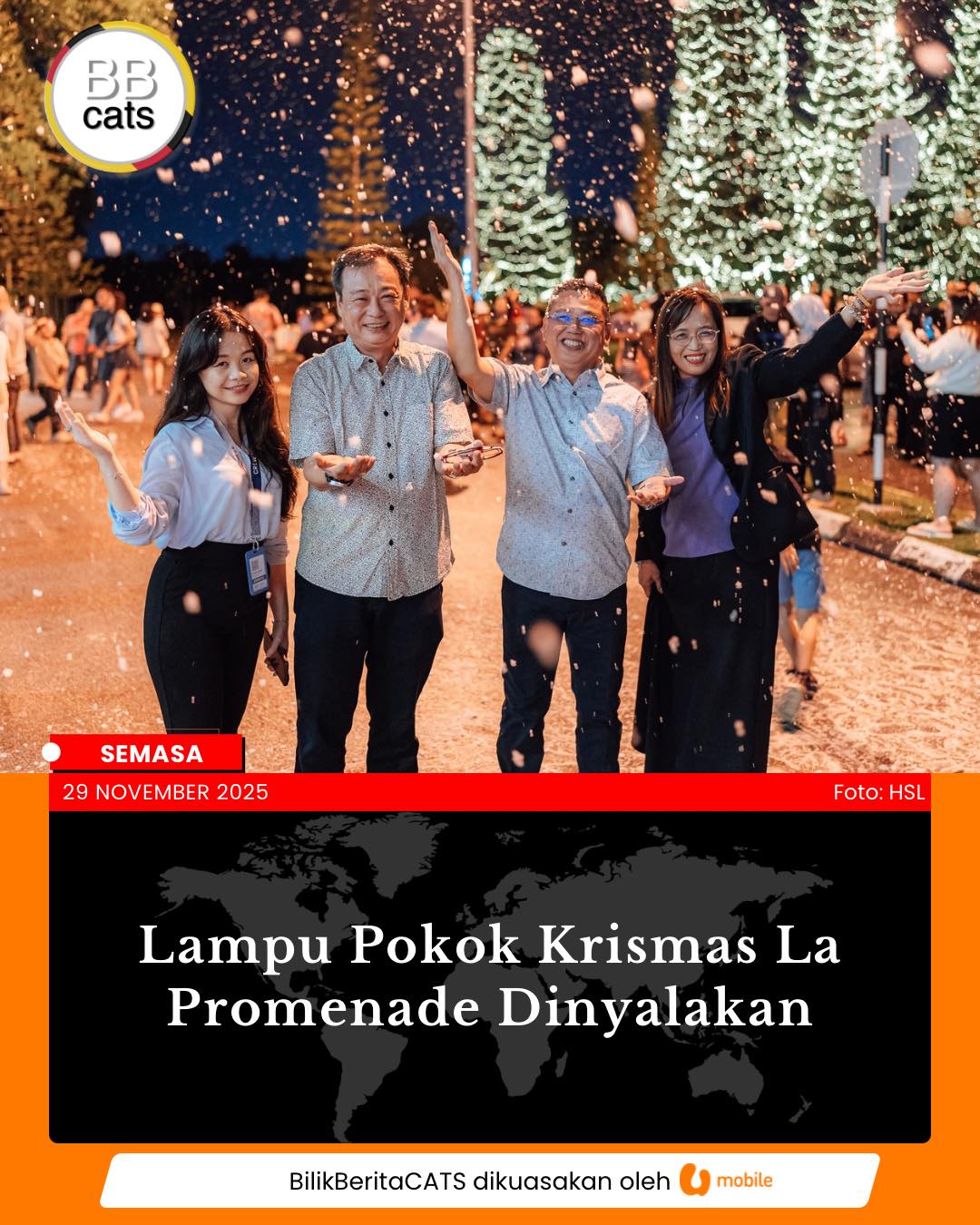 Lampu pokok Krismas La Promenade Dinyalakan