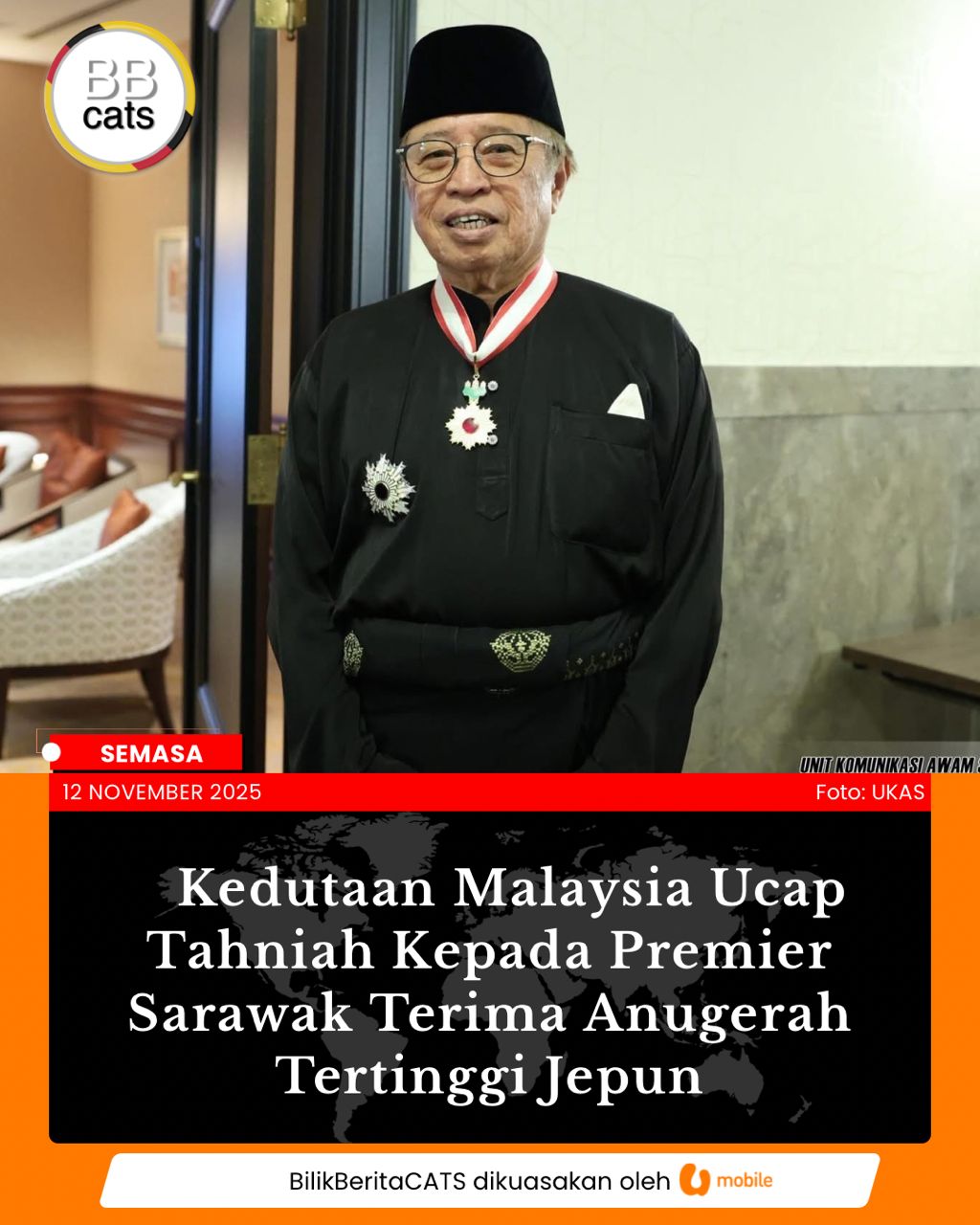 Kedutaan Malaysia Ucap Tahniah Kepada Premier Sarawak Terima Anugerah Tertinggi Jepun