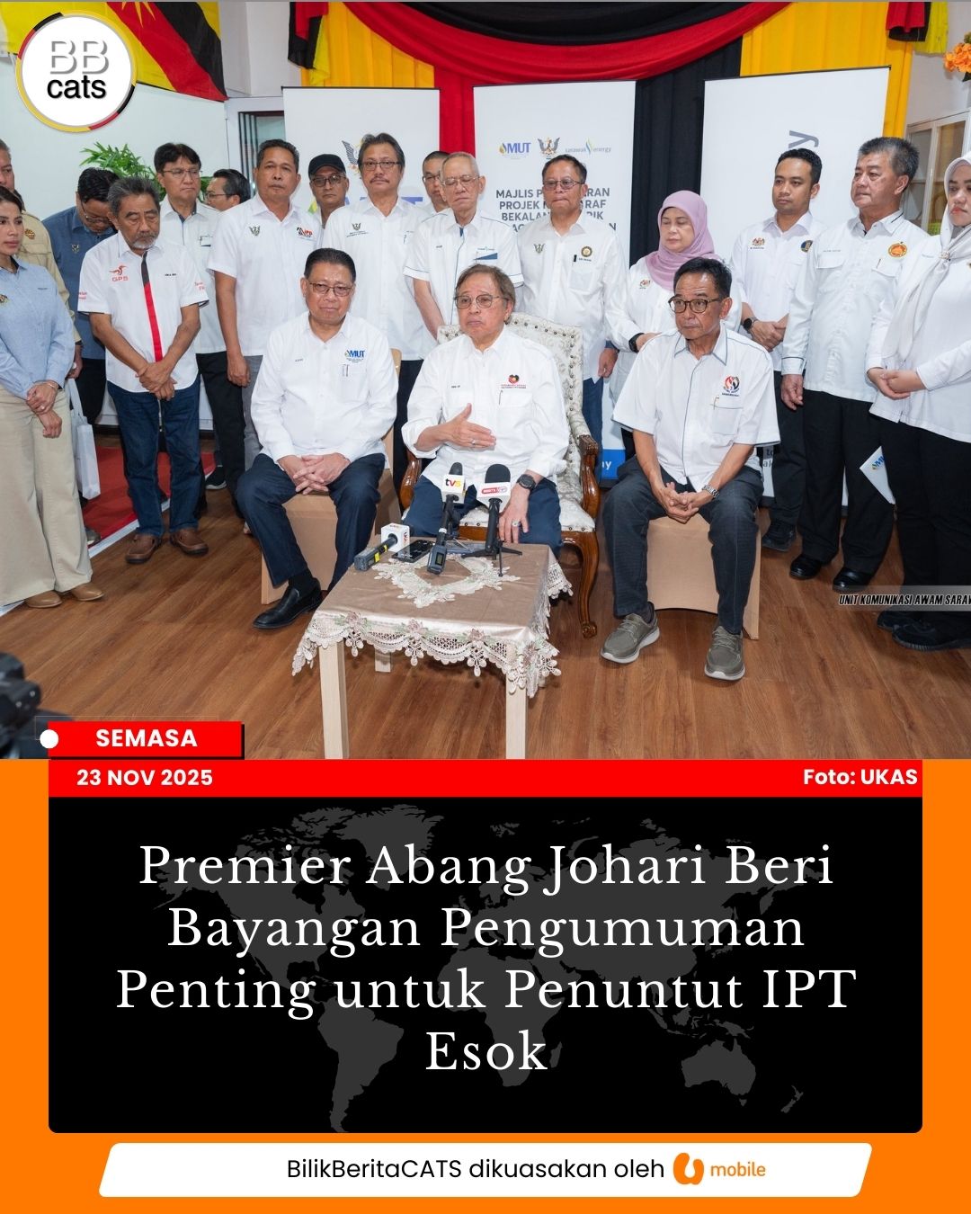 Premier Abang Johari Beri Bayangan Pengumuman Penting untuk Penuntut IPT Esok