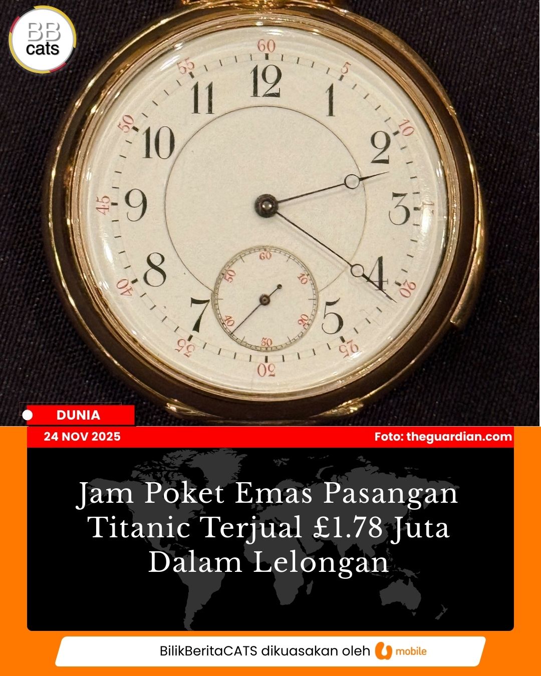Jam poket emas milik pasangan Isidor dan Ida Straus, mangsa tragedi Titanic 1912, terjual pada harga £1.78 juta dalam satu lelongan di London Read more...