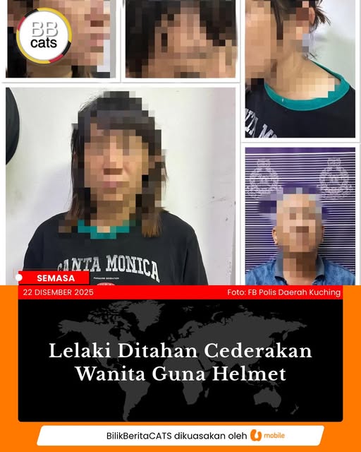 Lelaki Ditahan Cederakan Wanita Guna Helmet