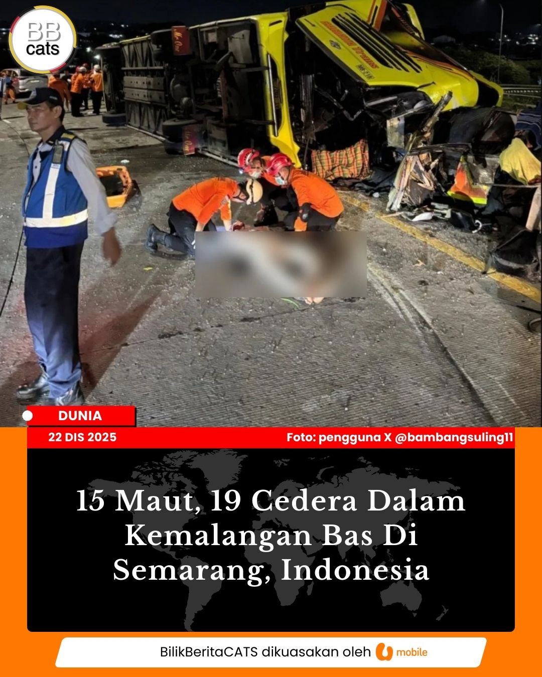 15 Maut, 19 Cedera Dalam Kemalangan Bas Di Semarang, Indonesia