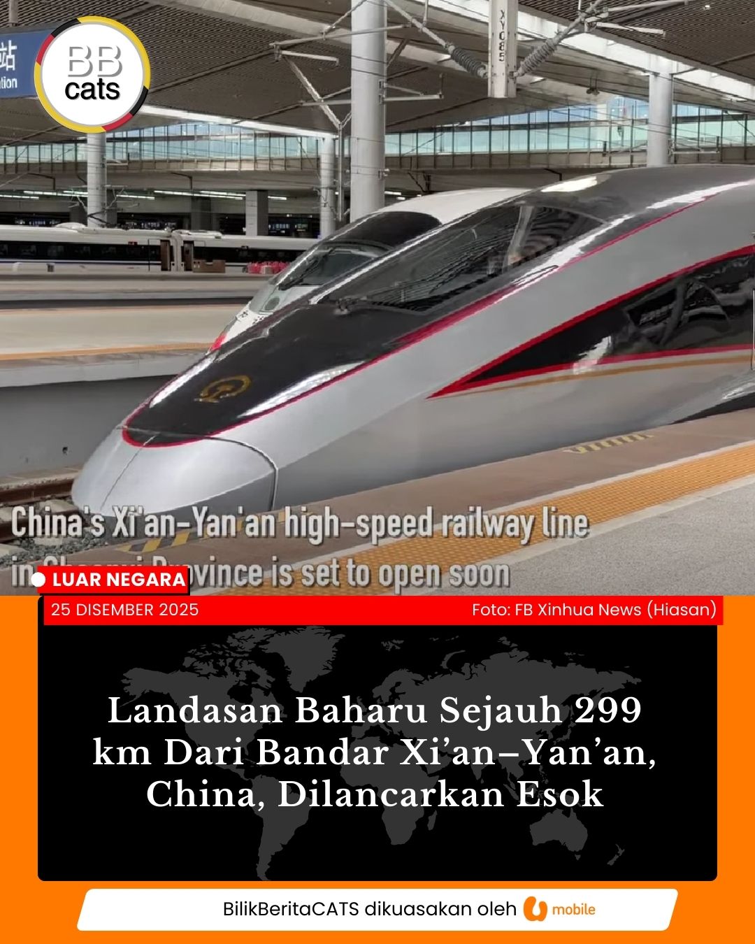 Landasan kereta api berkelajuan tinggi sepanjang 299 kilometer yang menghubungkan bandar Xi’an dan Yan’an di Wilayah Shaanxi, barat laut China dijadualkan mula beroperasi esok (26 Disember). Read more...