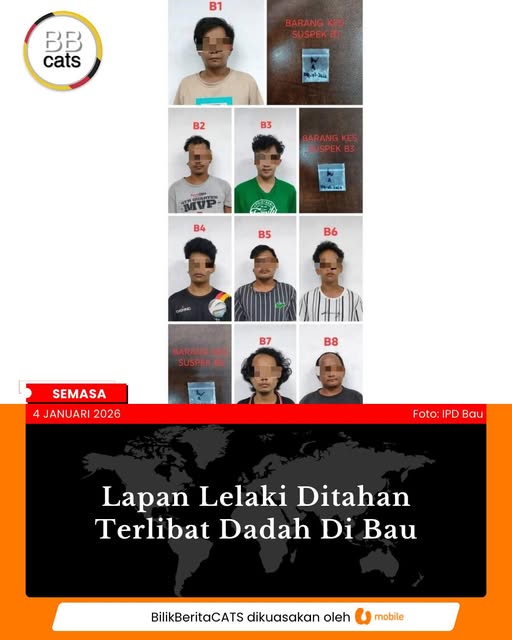 Lapan Lelaki Ditahan Terlibat Dadah Di Bau