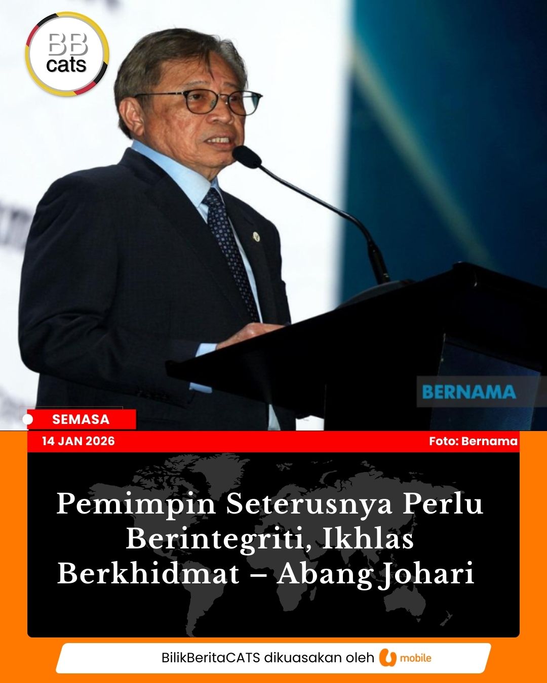 Tan Sri Abang Johari Tun Openg menegaskan pemimpin yang bakal menggantikannya sebagai Premier Sarawak mesti berintegriti, ikhlas berkhidmat Read more...