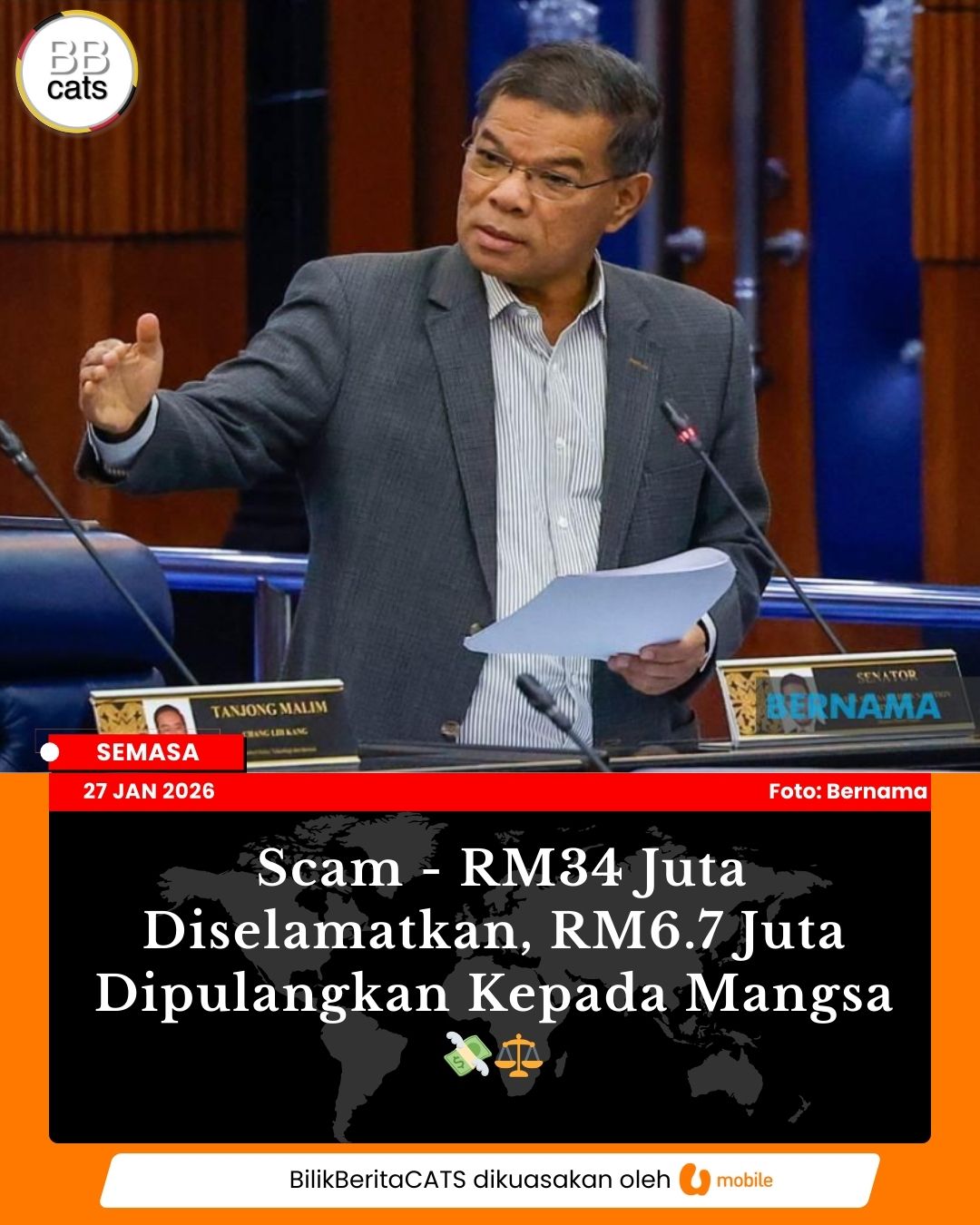 Sebanyak RM34 juta wang scam berjaya diselamatkan pada 2025, dengan RM6.7 juta dipulangkan kepada mangsa, hasil operasi 24 jam NSRC Read more...
