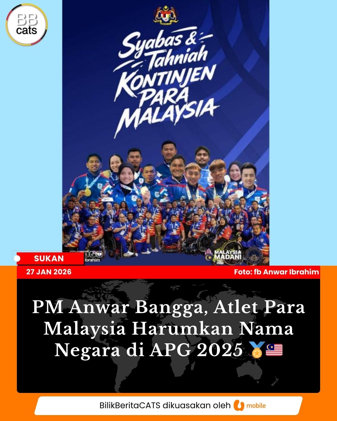 Perdana Menteri Datuk Seri Anwar Ibrahim memuji semangat juang atlet para Malaysia yang mengharumkan nama negara di APG 2025 Read more...