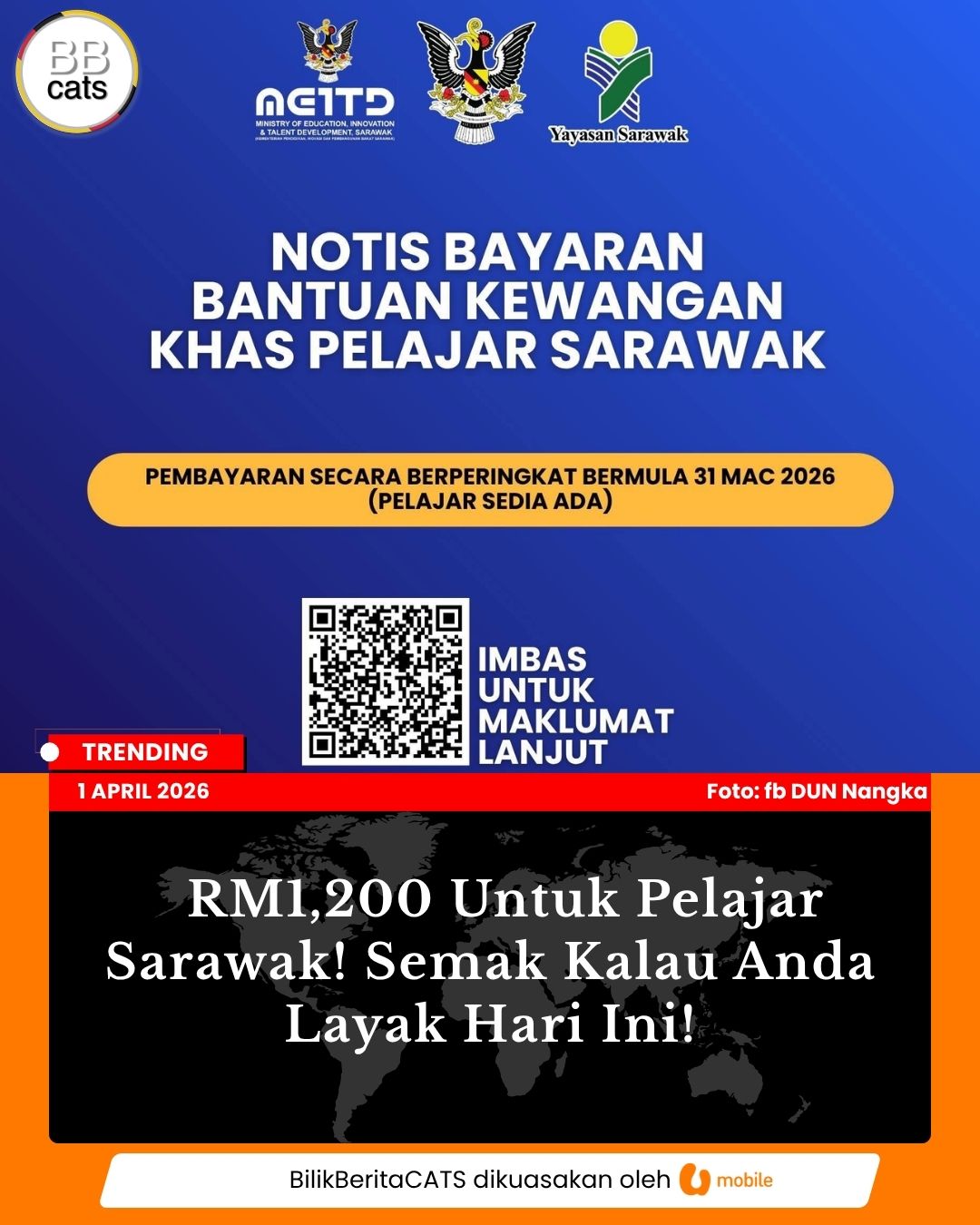 Bayaran Bantuan Kewangan Khas (BKK) untuk pelajar Sarawak di IPTA & IPTS kini mula diagihkan. Read more...