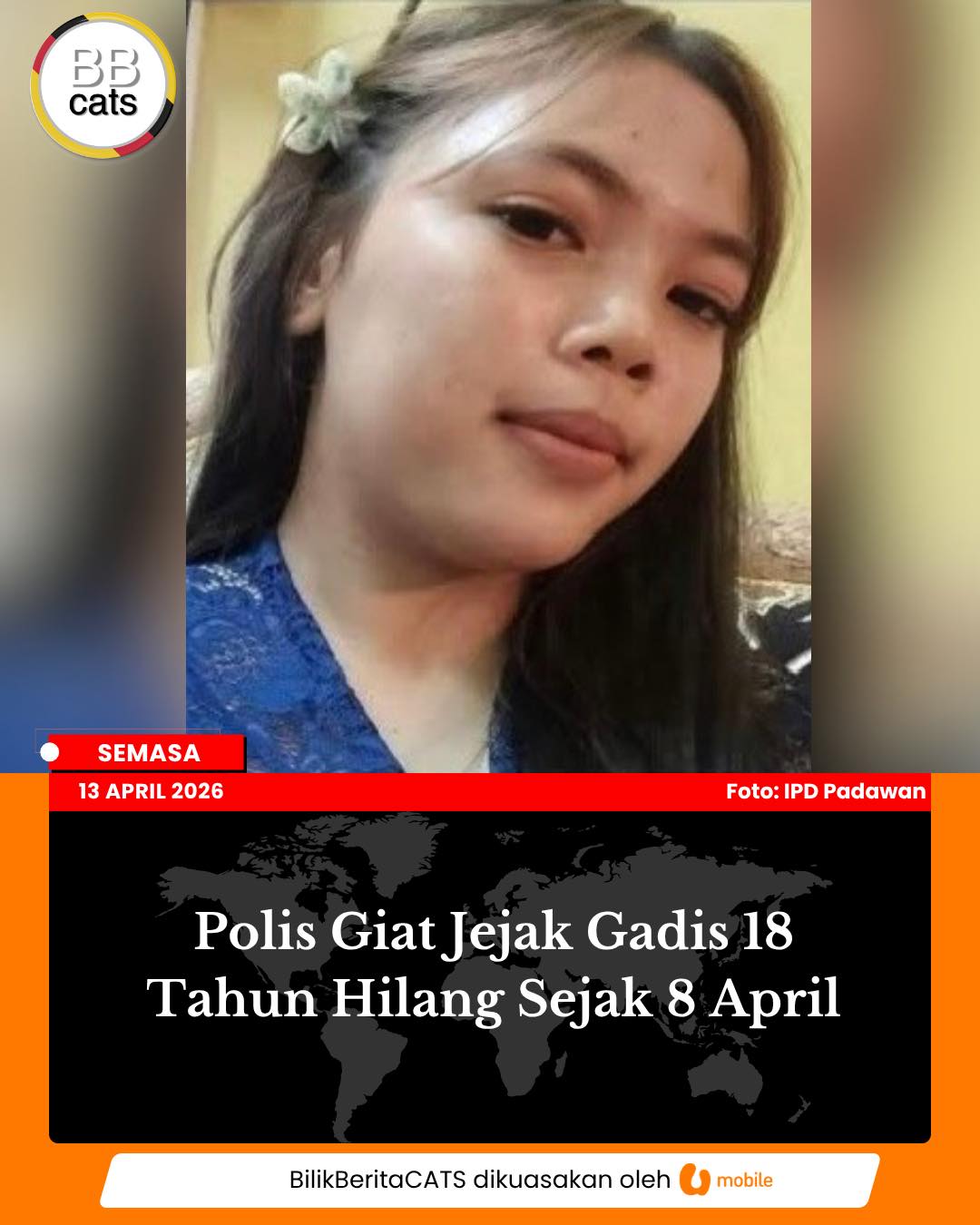 Polis Giat Jejak Gadis 18 Tahun Hilang Sejak 8 April