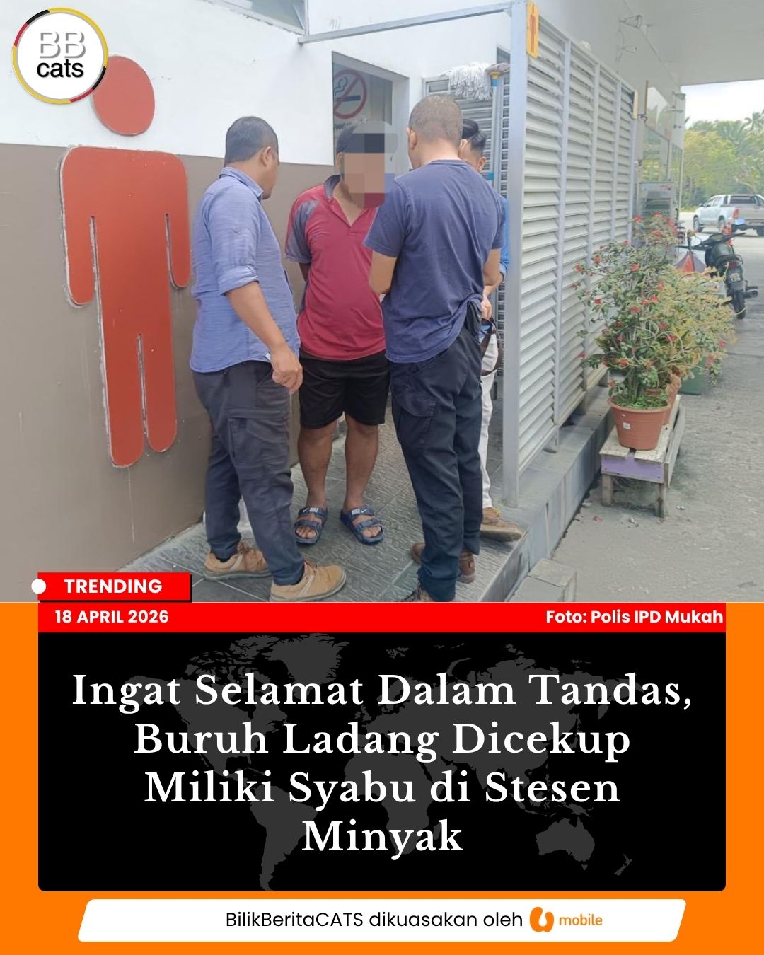 Ingat Selamat Dalam Tandas, Buruh Ladang Dicekup Miliki Syabu di Stesen Minyak