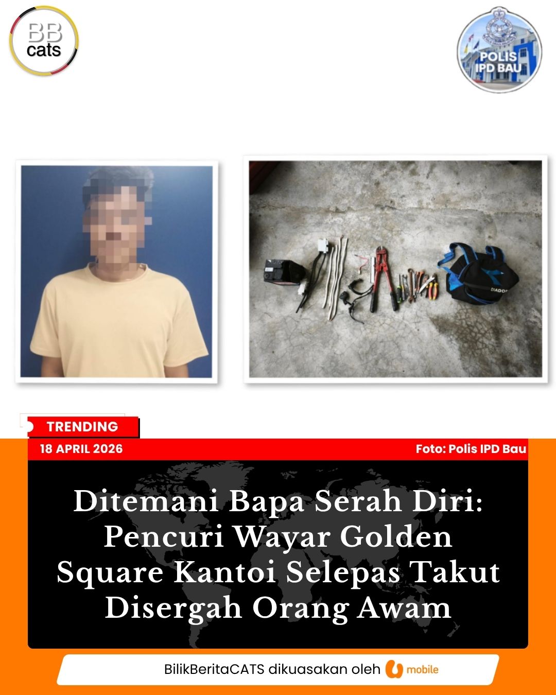 Ditemani Bapa Serah Diri: Pencuri Wayar Golden Square Kantoi Selepas Takut Disergah Orang Awam