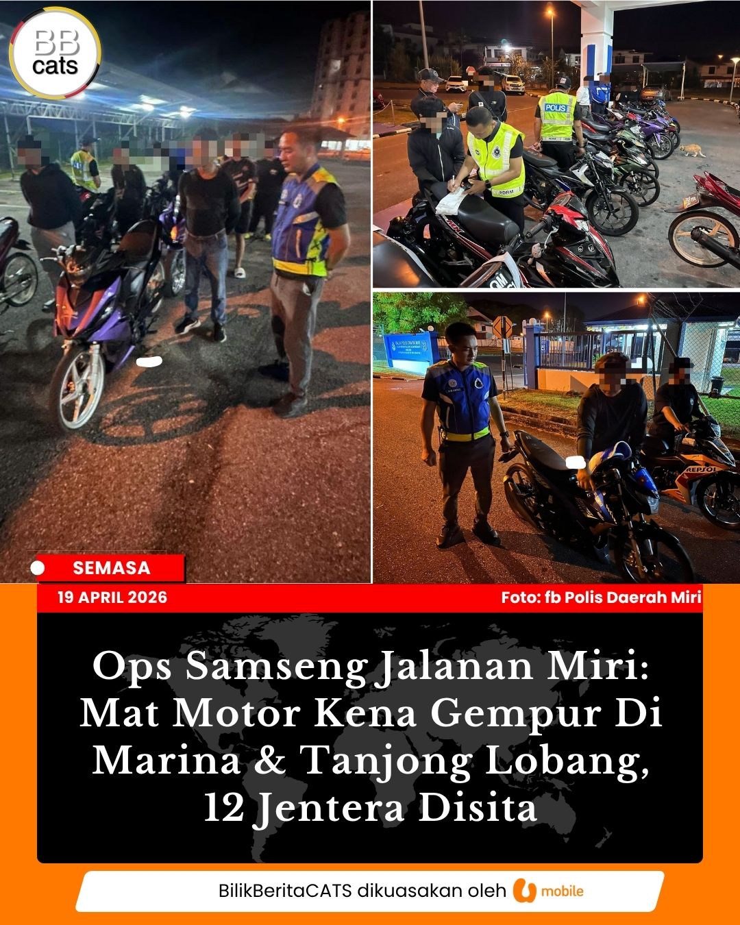 Ops Samseng Jalanan Miri: Mat Motor Kena Gempur Di Marina & Tanjong Lobang, 12 Jentera Disita