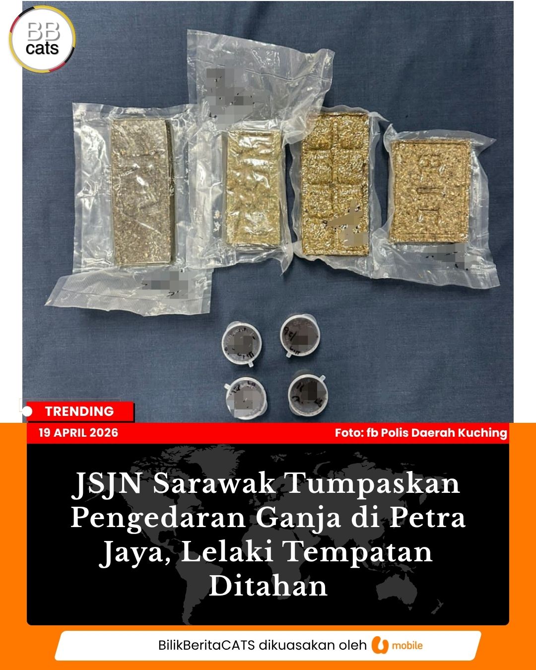 JSJN Sarawak Tumpaskan Pengedaran Ganja di Petra Jaya, Lelaki Tempatan Ditahan