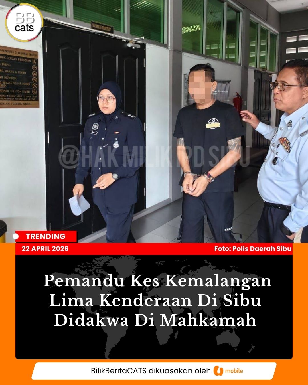 Pemandu Kes Kemalangan Lima Kenderaan Di Sibu Didakwa Di Mahkamah