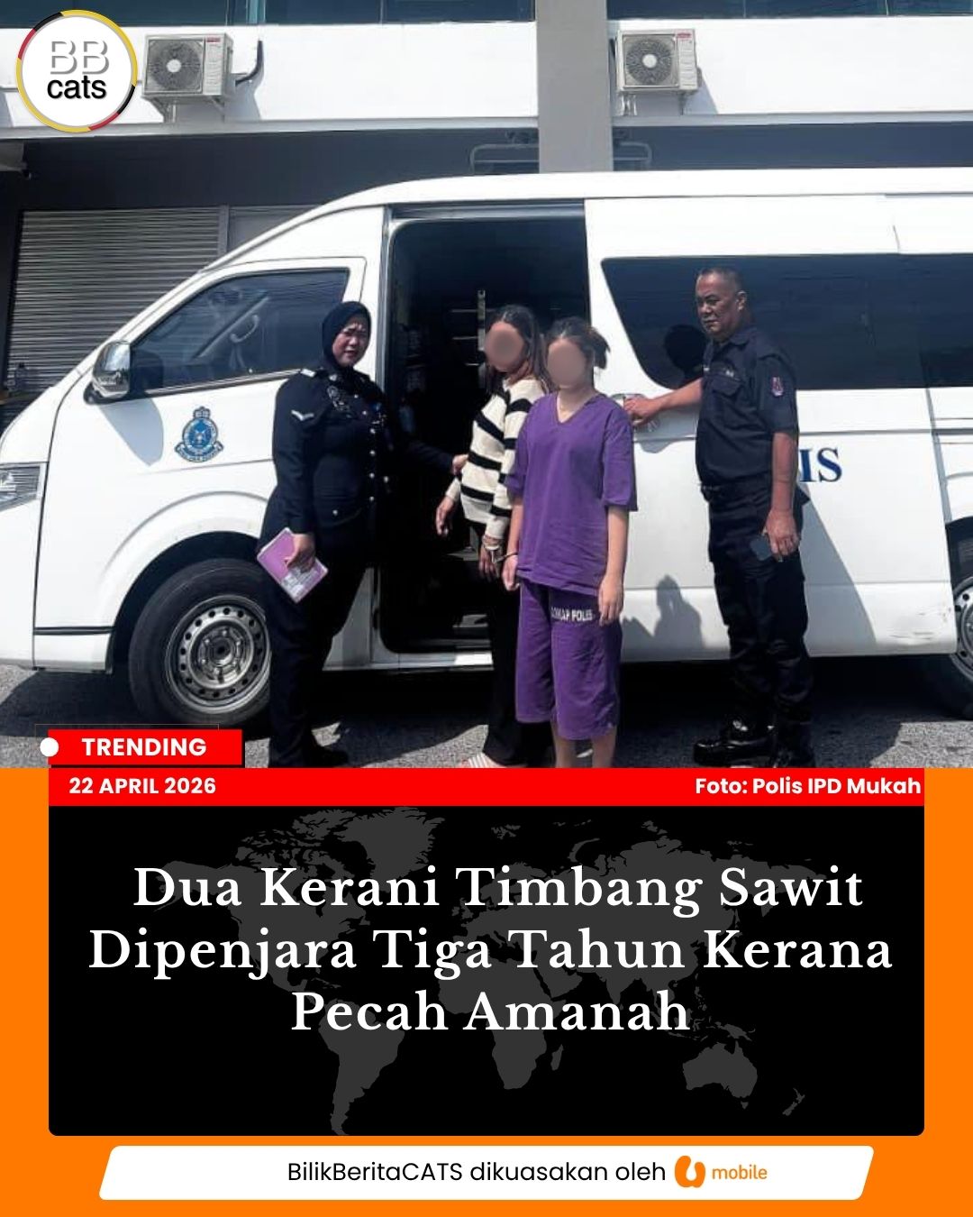 Dua Kerani Timbang Sawit Dipenjara Tiga Tahun Kerana Pecah Amanah