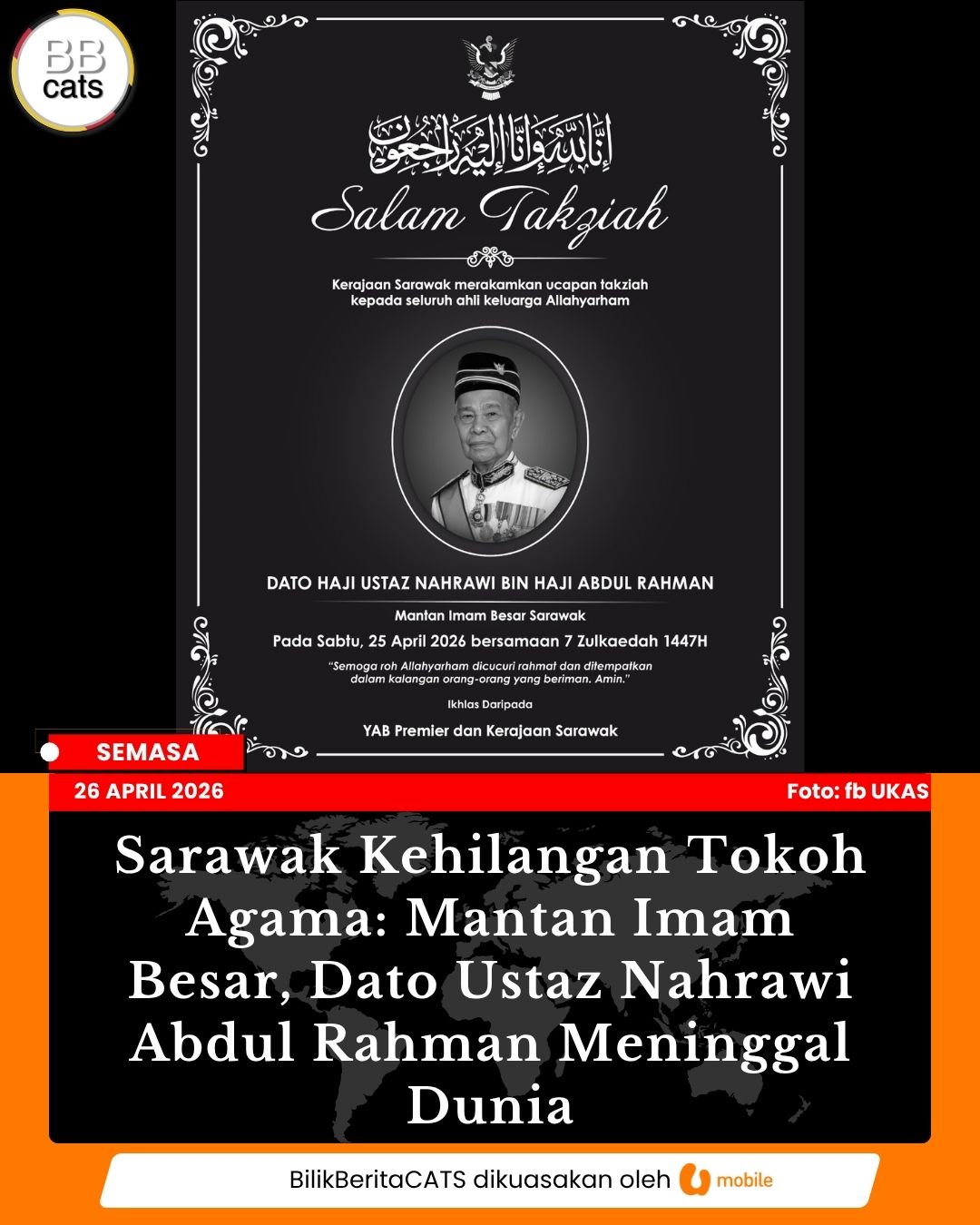 Bekas Menteri Sarawak dan tokoh veteran MA63, Dato Sri Bo’ Tajang Laing, meninggal dunia pada usia 100 tahun Read more...