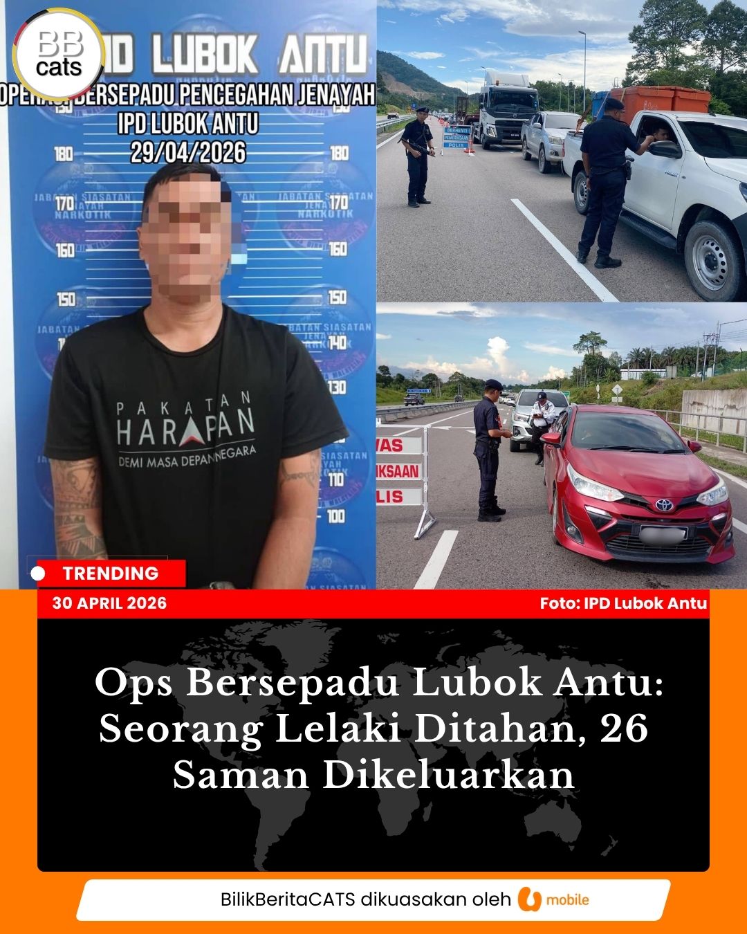 IPD Lubok Antu menahan seorang lelaki positif dadah dan mengeluarkan 26 saman lalu lintas dalam Operasi Bersepadu selama lima jam di Engkilili Read more...