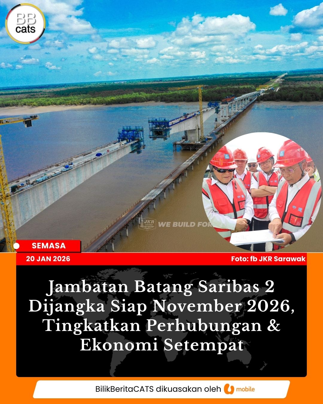 Projek Jambatan Batang Saribas 2 kini hampir siap dengan 80 peratus kerja selesai dan dijangka dibuka kepada trafik pada November 2026 Read more...