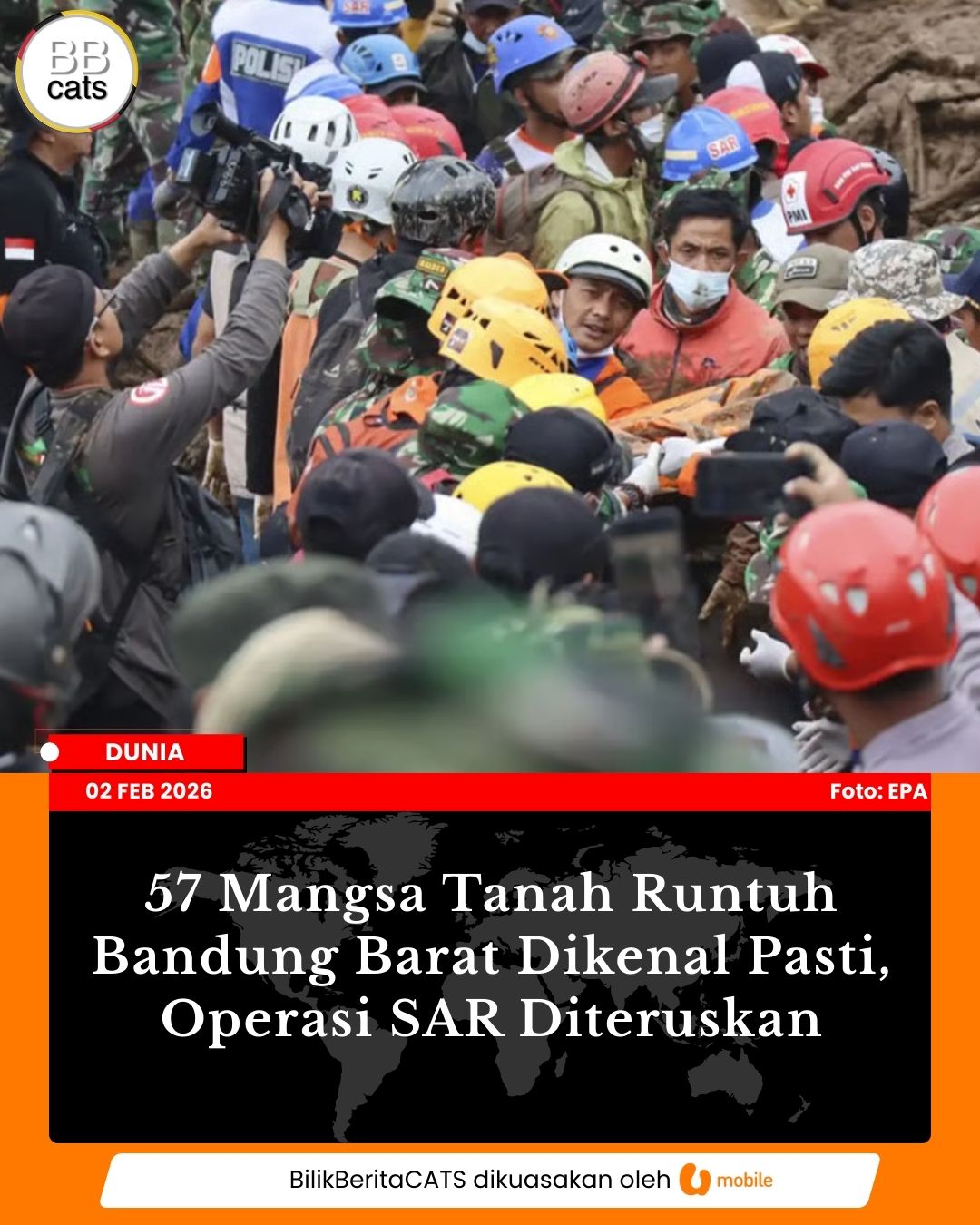 57 Mangsa Tanah Runtuh Bandung Barat Dikenal Pasti, Operasi SAR Diteruskan