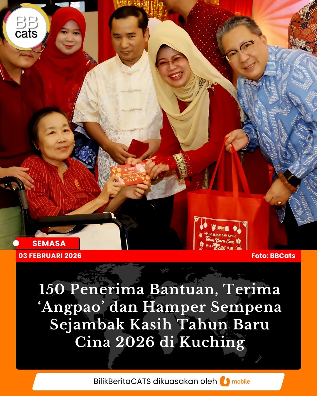 Seramai 150 orang penerima bantuan bulanan Jabatan Kebajikan Masyarakat diraikan hari ini bersempena Program Sejambak Kasih Tahun Baru Cina 2026 di Kuching. Read more...