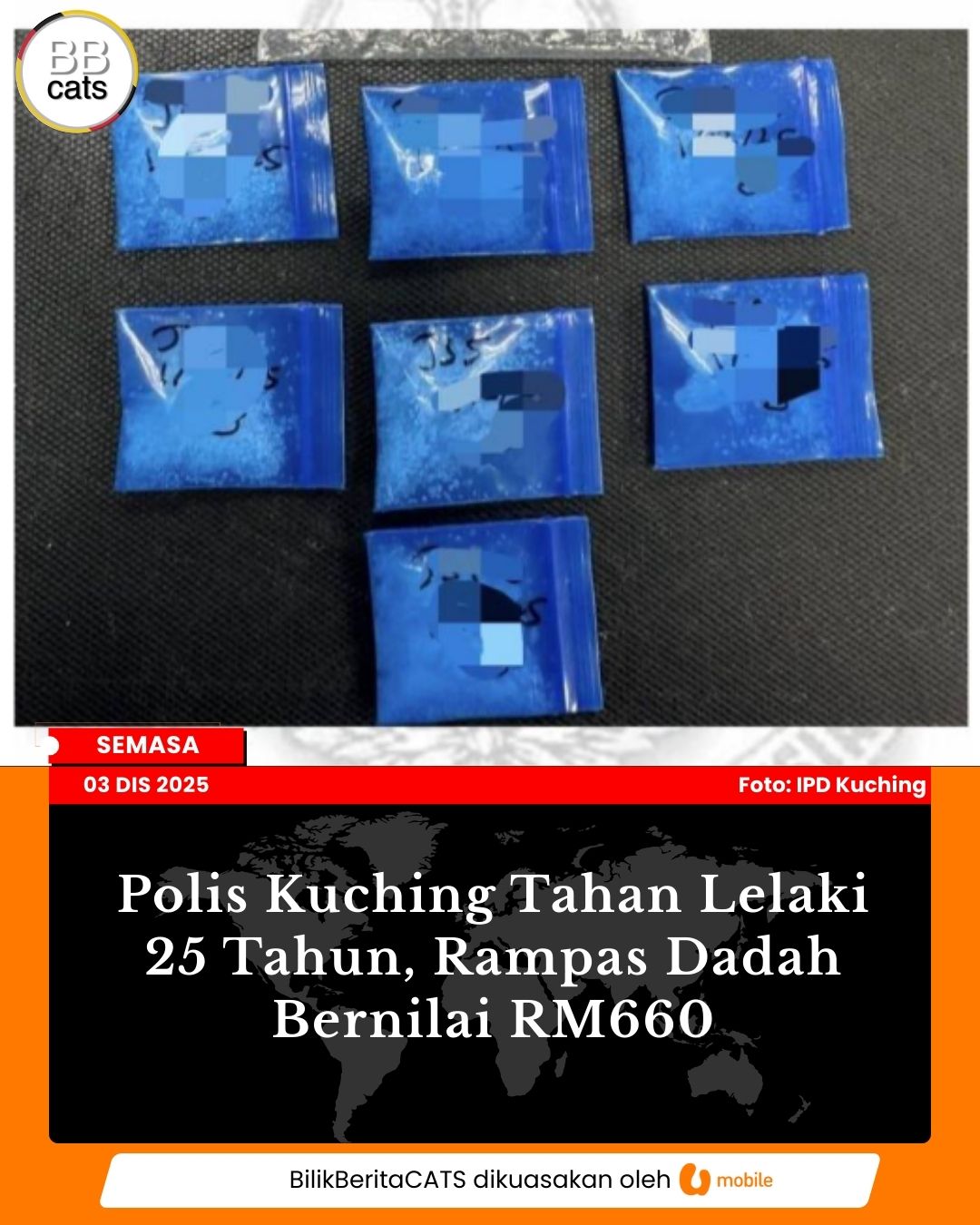 Polis Kuching Tahan Lelaki 25 Tahun, Rampas Dadah Bernilai RM660