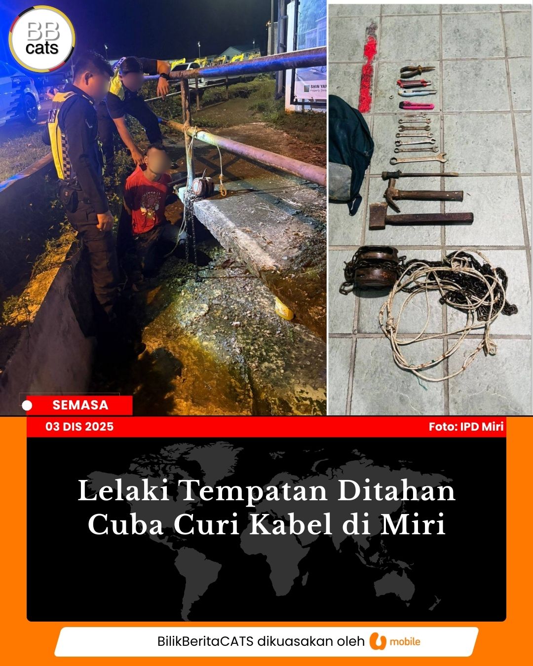 Seorang lelaki tempatan ditahan polis di Miri selepas disyaki cuba mencuri kabel, dengan beberapa peralatan jenayah turut dirampas untuk siasatan lanjut. Read more...