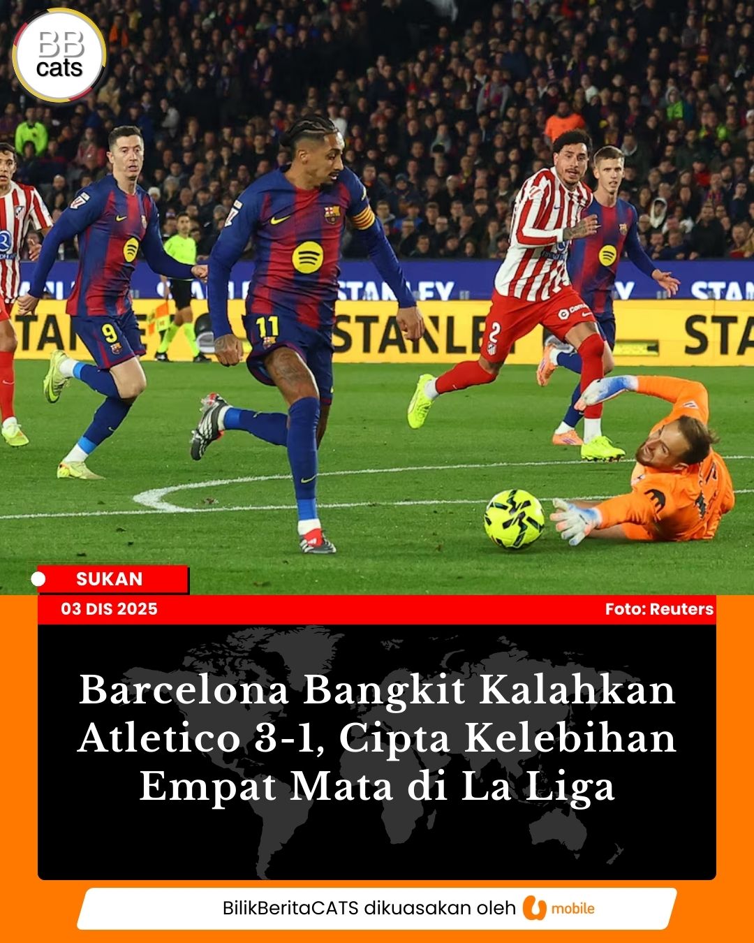 Barcelona Bangkit Kalahkan Atletico 3-1, Cipta Kelebihan Empat Mata di La Liga