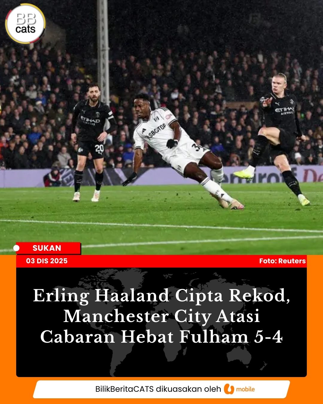 Erling Haaland Cipta Rekod, Manchester City Atasi Cabaran Hebat Fulham 5-4