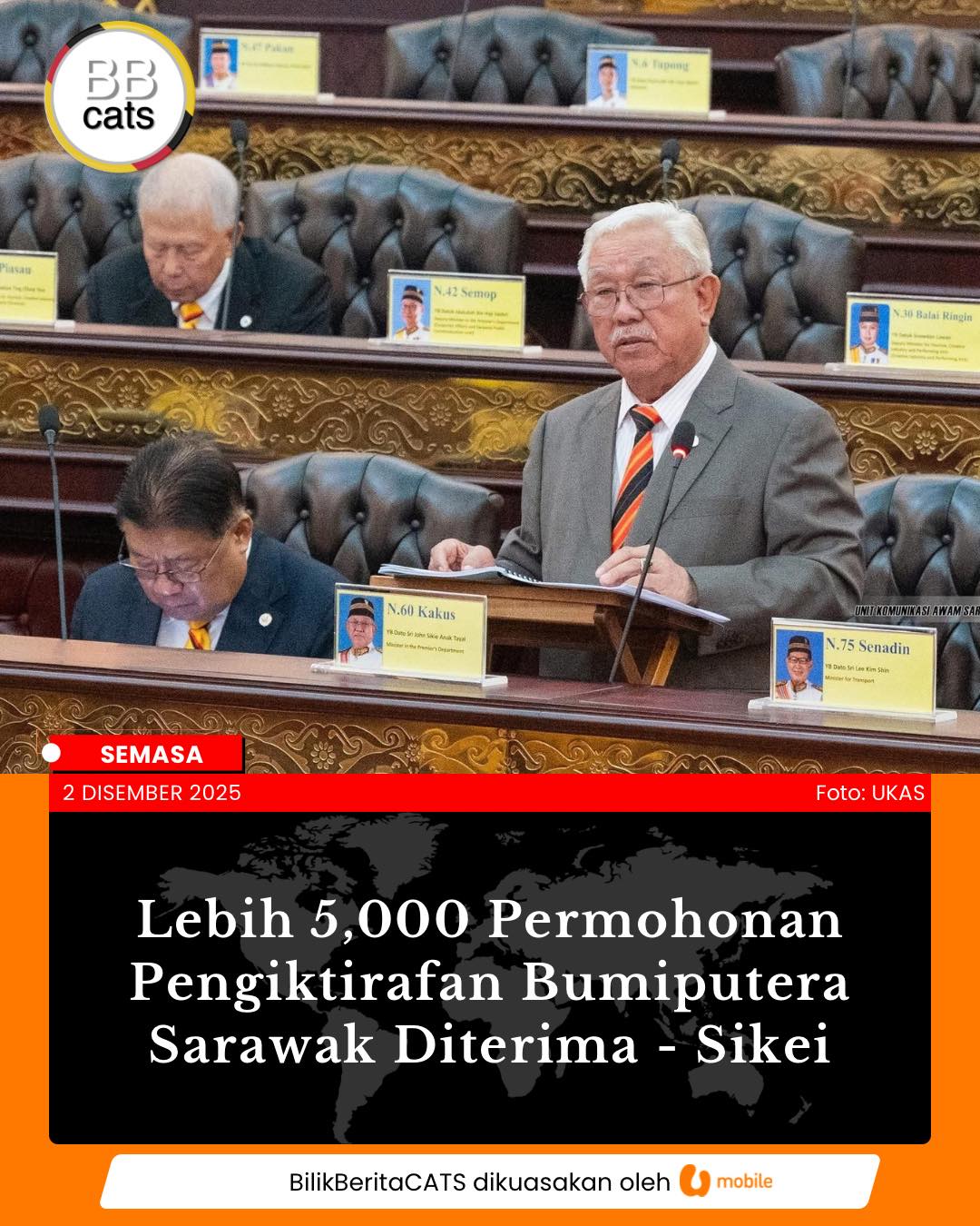 Sebanyak 5,790 permohonan untuk diiktiraf bumiputera Sarawak telah diterima Jawatankuasa Pengiktirafan Sebagai Bumiputera Sarawak (JPBS). Read more...