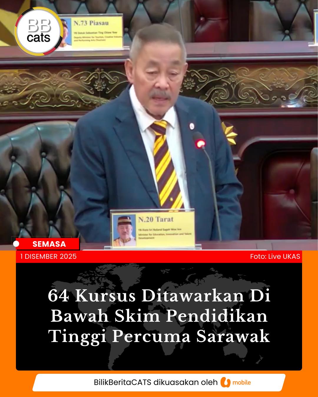 Sebanyak 64 kursus ditawarkan di bawah Skim Pendidikan Tinggi Percuma yang akan mula dilaksanakan oleh Kerajaan Sarawak pada Januari 2026. Read more...