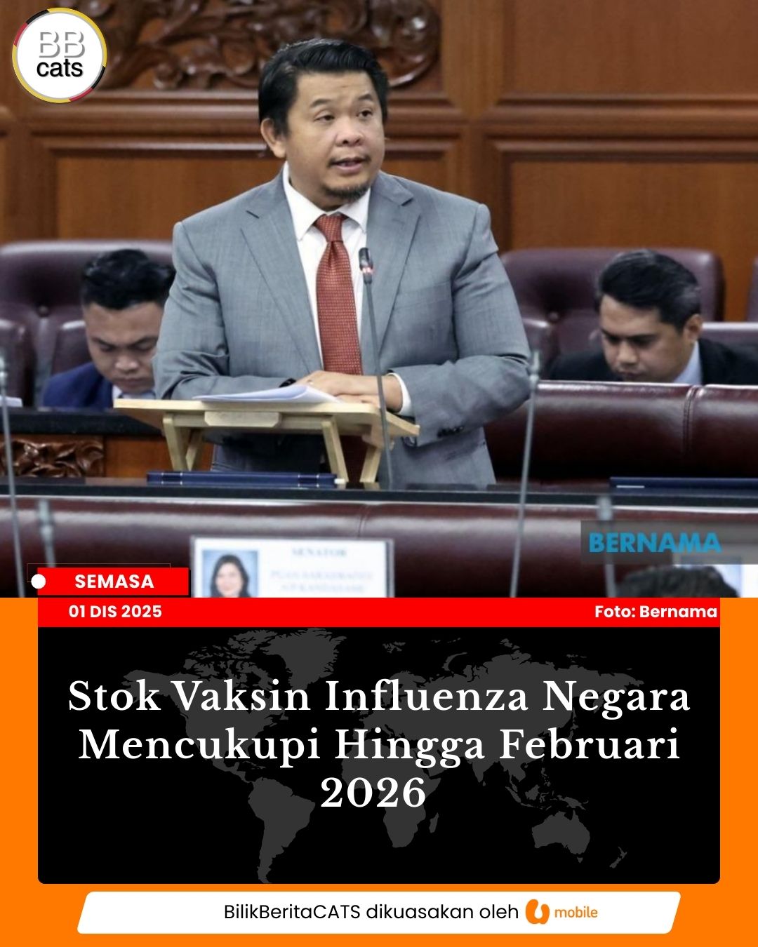 Stok vaksin influenza di Malaysia dijangka mencukupi sehingga Februari 2026, kata Timbalan Menteri Kesihatan Datuk Lukanisman Awang Sauni. Read more...