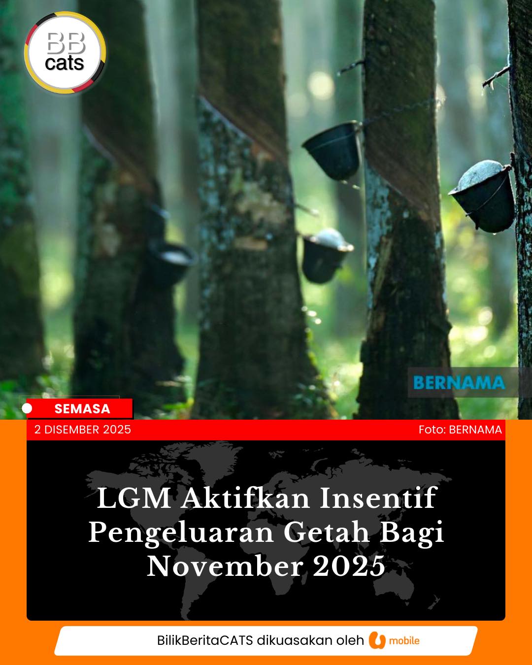 Insentif Pengeluaran Getah (IPG) untuk getah sekerap dan lateks diaktifkan bagi November 2025 di Semenanjung Malaysia, Sabah dan Sarawak, menurut Lembaga Getah Malaysia (LGM). Read more...
