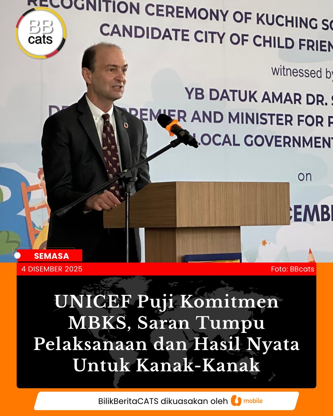 UNICEF puji MBKS dalam menjadikan Kuching Selatan sebuah bandar mesra kanak-kanak, sambil menegaskan bahawa tumpuan kini beralih kepada fasa pelaksanaan. Read more...