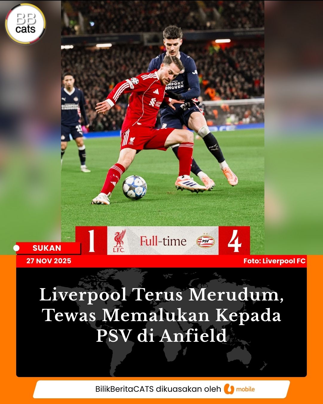 Liverpool terus melalui prestasi buruk apabila tewas 1-4 kepada PSV di Anfield dalam saingan Liga Juara-Juara. Read more...