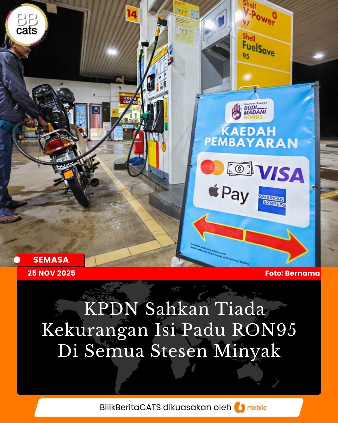 KPDN mengesahkan tiada kekurangan isi padu RON95 di semua stesen minyak selepas pemeriksaan ke atas 2,282 dispenser. Read more...