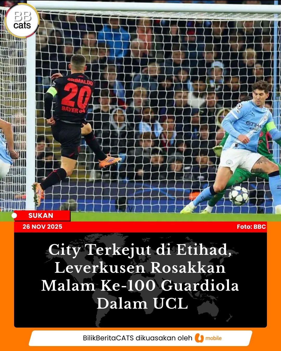 Manchester City dikejutkan Bayer Leverkusen 2-0 pada malam ke-100 Pep Guardiola dalam Liga Juara-Juara. Read more...