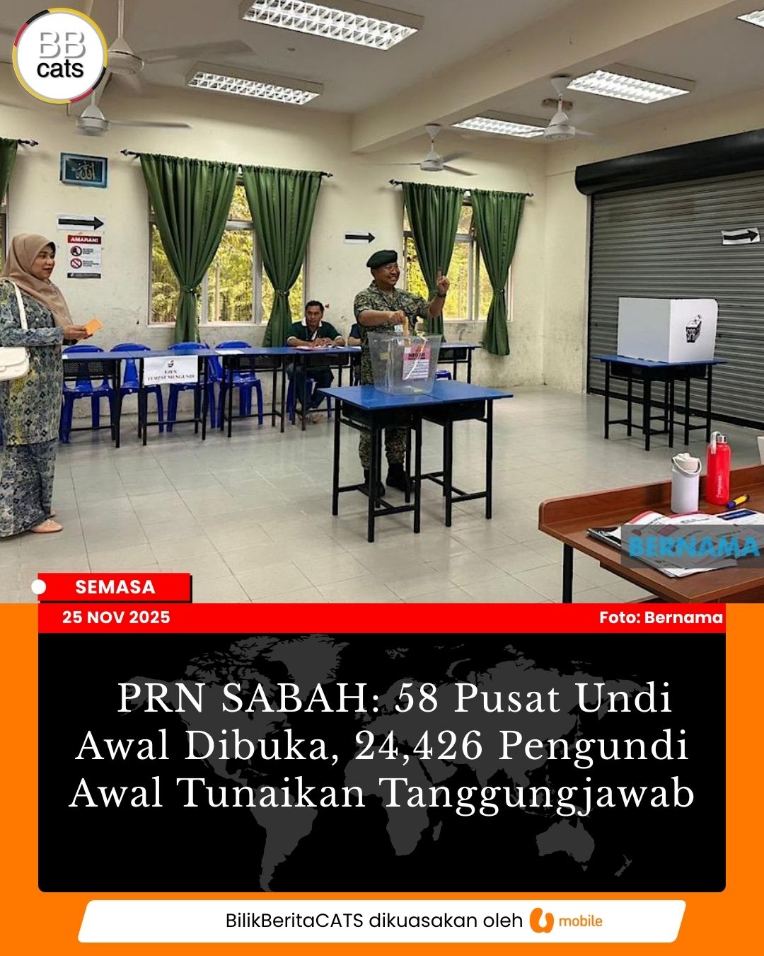 PRN SABAH: 58 Pusat Undi Awal Dibuka, 24,426 Pengundi Awam Tunaikan Tanggungjawab
