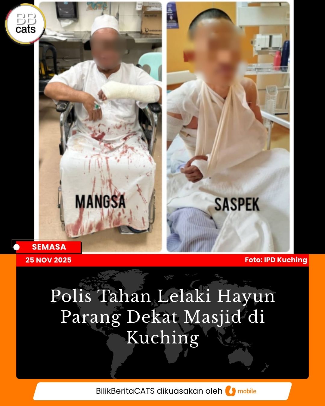 Seorang lelaki 25 tahun ditahan polis selepas menghayunkan parang berhampiran masjid di Tabuan Lot, Kuching Read more...