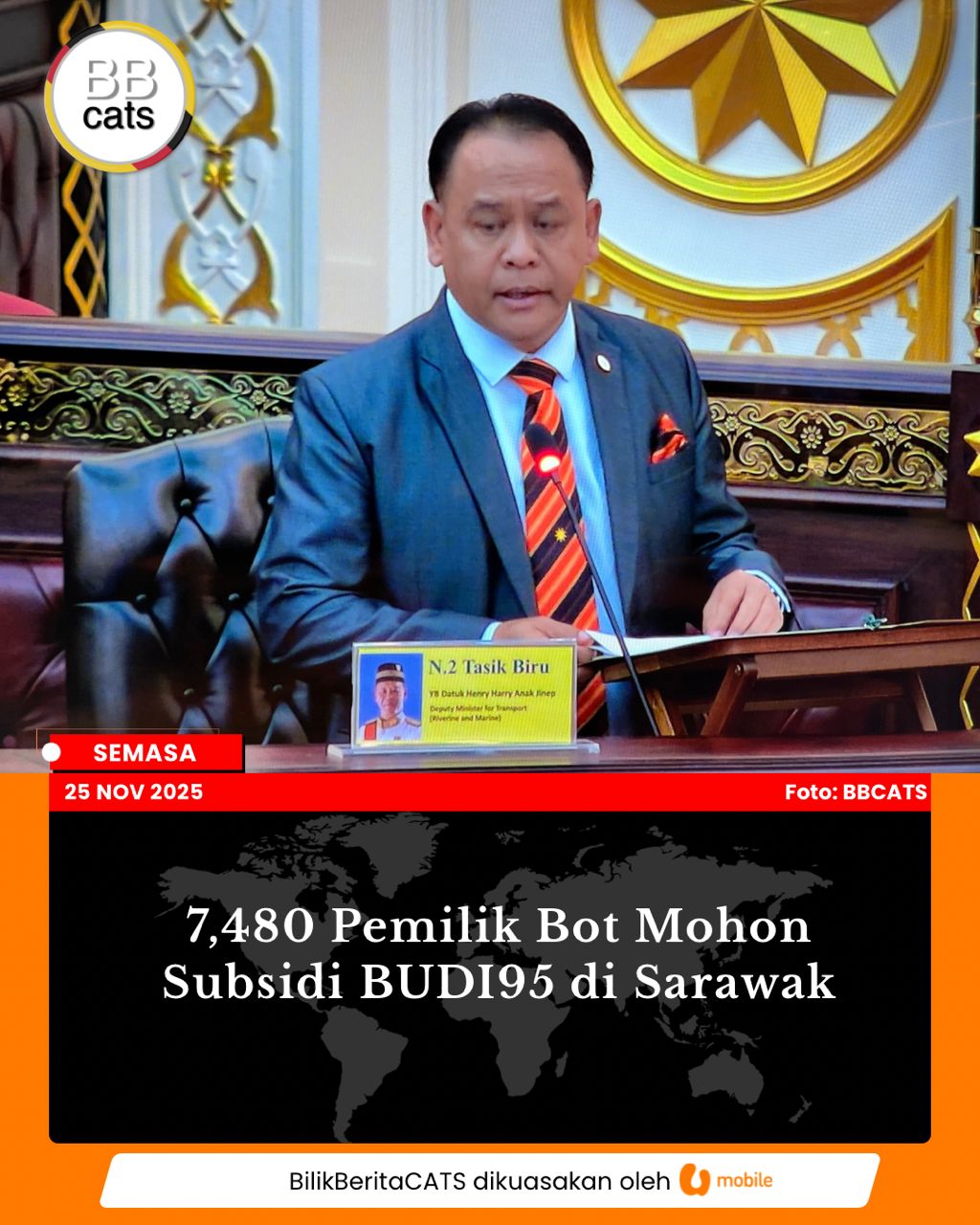 Sebanyak 7,480 pemilik bot persendirian dan bot panjang di Sarawak telah memohon Subsidi BUDI Madani RON95 (BUDI95) setakat 19 November 2025, kata Timbalan Menteri Pengangkutan (Laut dan Sungai) Sarawak, Datuk Henry Harry Anak Jinep. Read more...