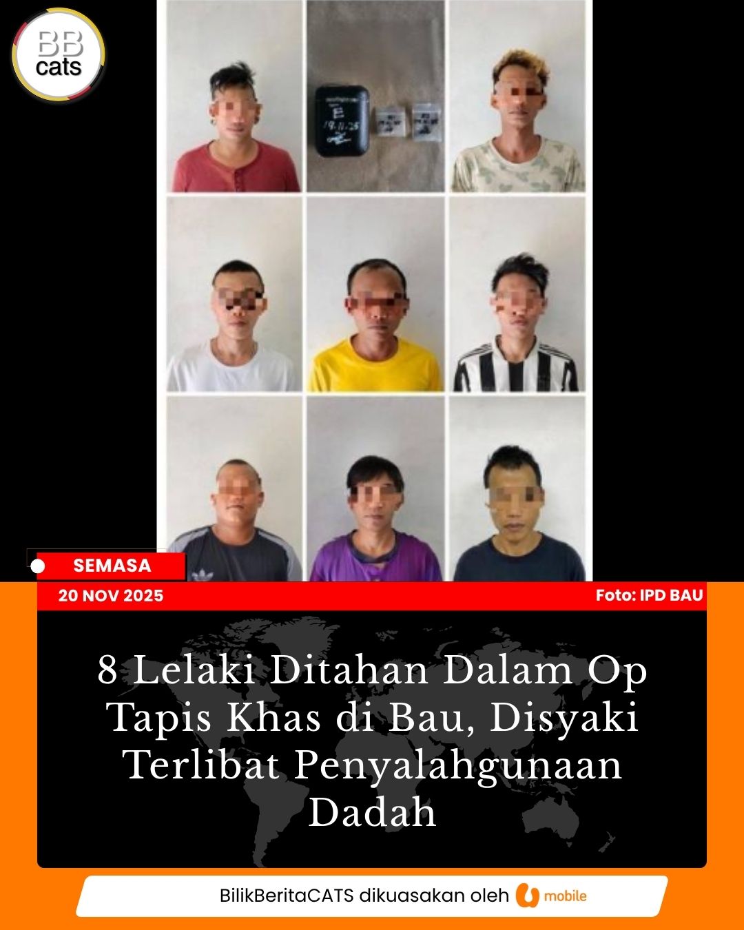 8 Lelaki Ditahan Dalam Op Tapis Khas di Bau, Disyaki Terlibat Penyalahgunaan Dadah