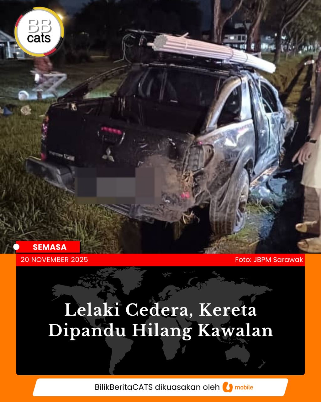 Lelaki Cedera, Kereta Dipandu Hilang Kawalan