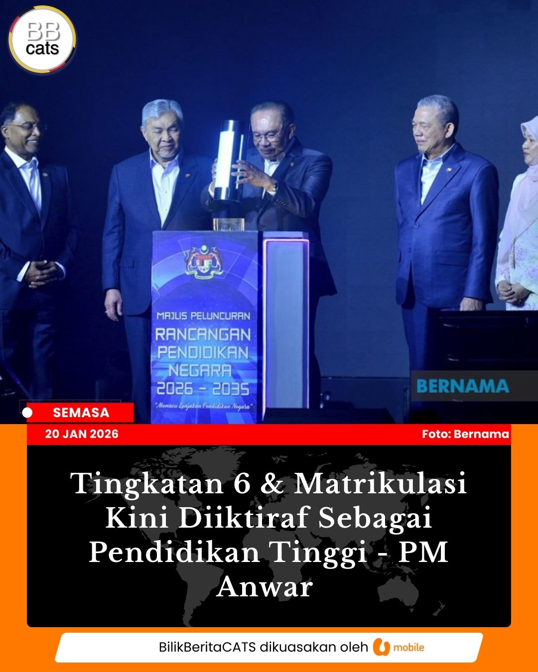 Tingkatan 6 & Matrikulasi Kini Diiktiraf Sebagai Pendidikan Tinggi - PM Anwar